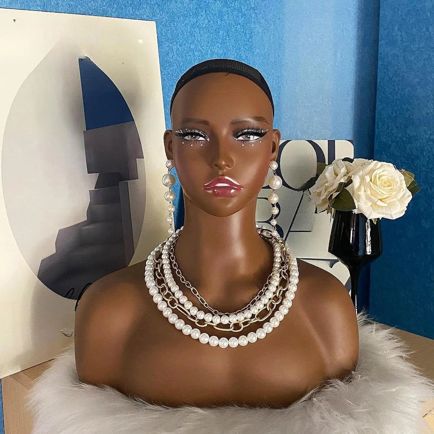 Mannequin Femme Demi-Corps avec Double Épaule – Présentoir pour Perruques et Accessoires