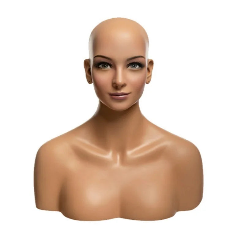 Ce mannequin féminin demi-corps avec double épaule est conçu pour mettre en valeur perruques, chapeaux, colliers et accessoires de mode. Son design réaliste et sa finition élégante en font un choix parfait pour les vitrines et studios professionnels.