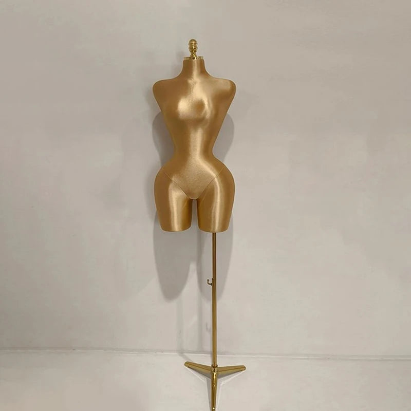 Ce mannequin féminin grande taille à la finition dorée met parfaitement en valeur les vêtements pour femmes aux courbes prononcées. Conçu pour sublimer robes, tenues moulantes et collections haut de gamme, il combine élégance et réalisme.