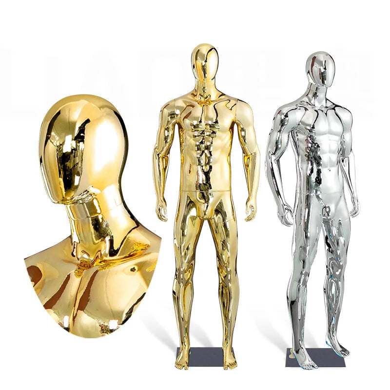 Mannequin Homme Chromé Argent ou Or – Corps Complet Musclé pour Boutique